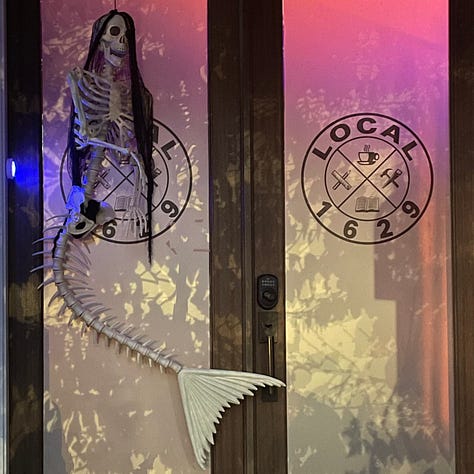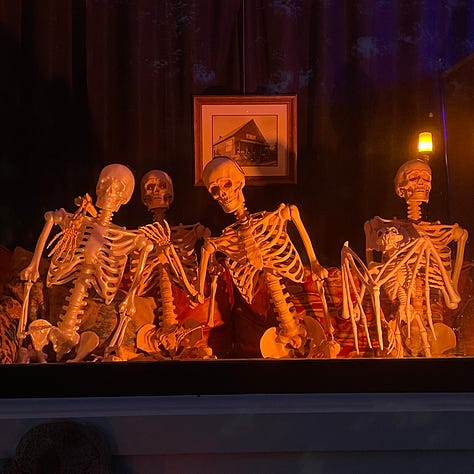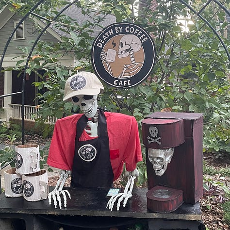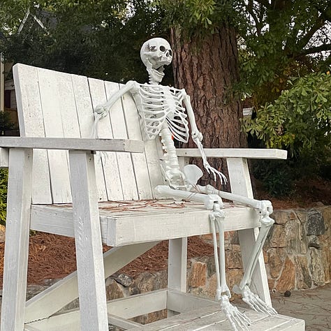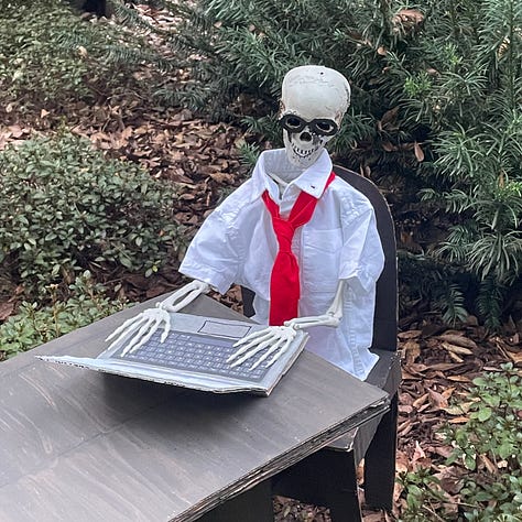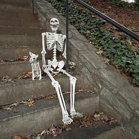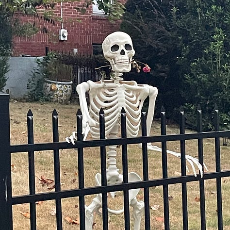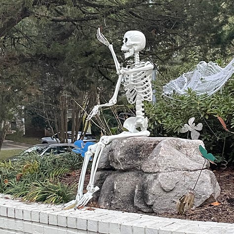My neighborhood is full of yard decorations at this time of year, and the dead apparently rise to visit us. Here are a few Samhain/Halloween pictures from my morning walks.
